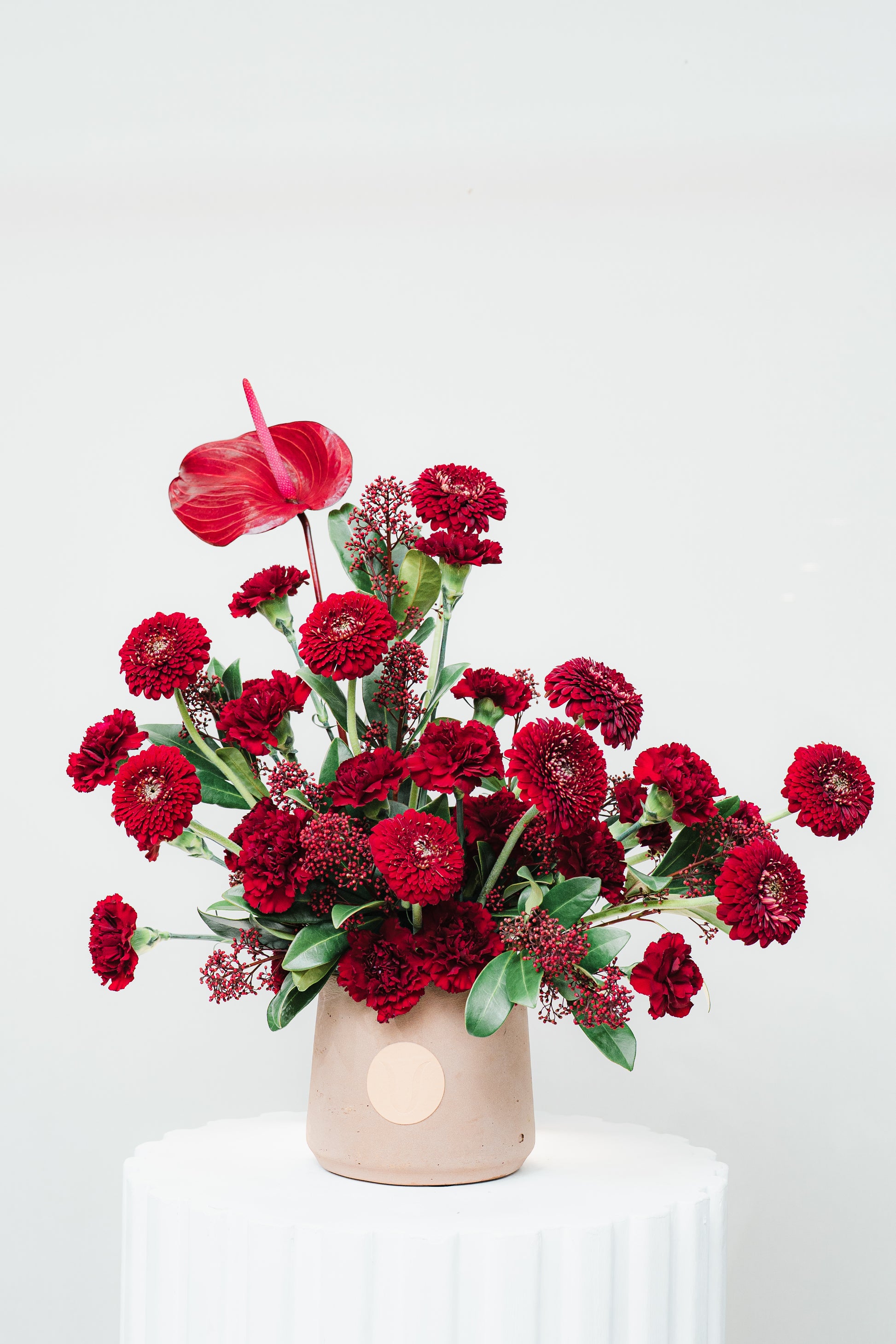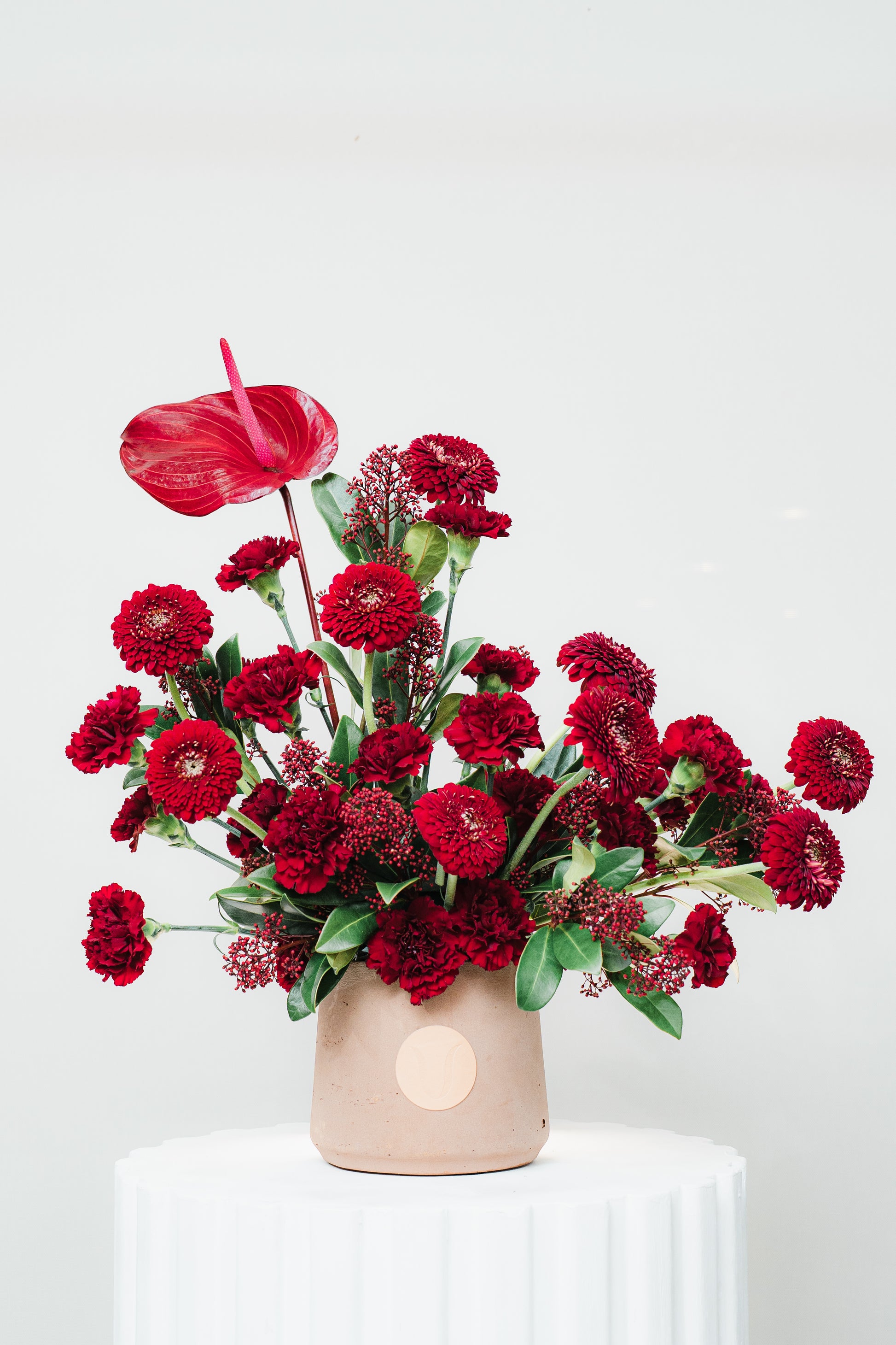 Elevate your Valentine's Day with our luxury flower collection. Featuring premium red roses and architectural anthuriums in designer ceramic vases, these modern arrangements are the ultimate romantic gift. Order now for exclusive floral designs and premium delivery.